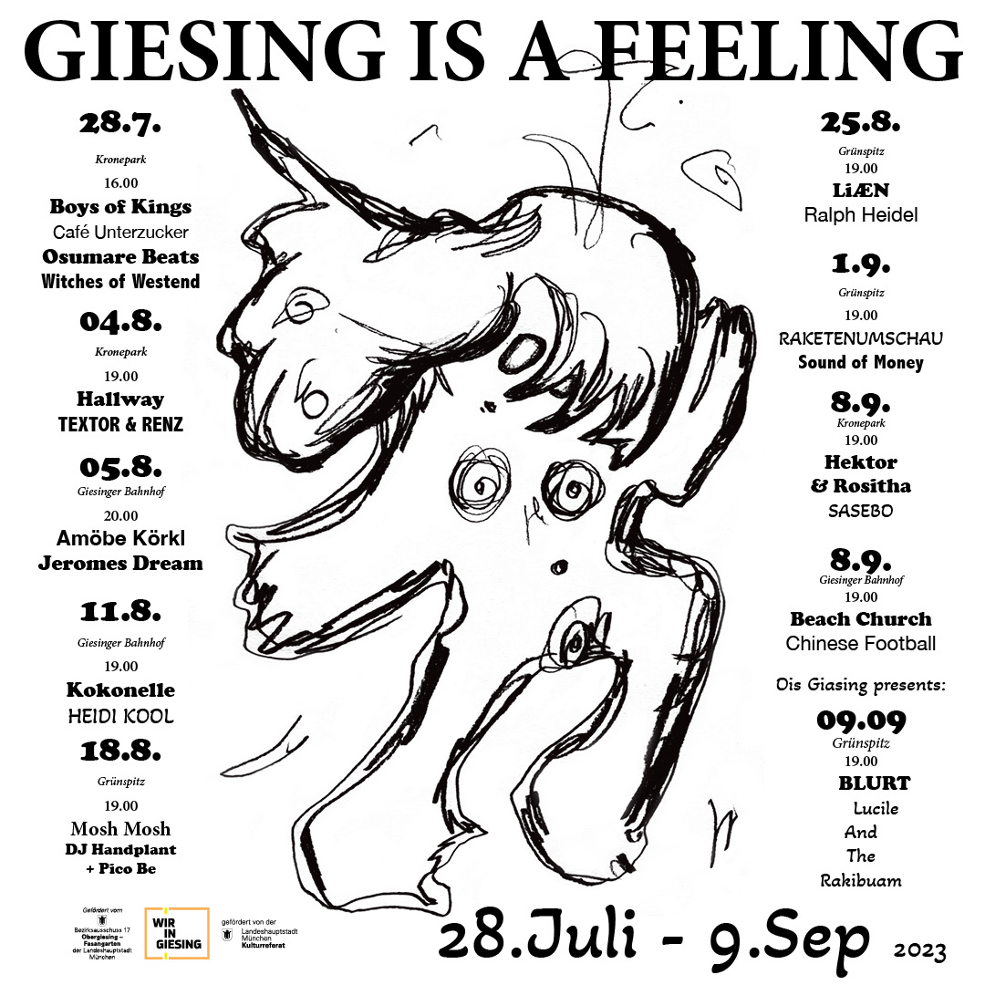 Langfristig will sich das “Giesing Is A Feeling” als kleinformatiges, subkulturelles und diverses Showcase-Festival mit Schwerpunkt auf der unabhängigen, popmusikalischen Gegenkultur Süddeutschlands etablieren.